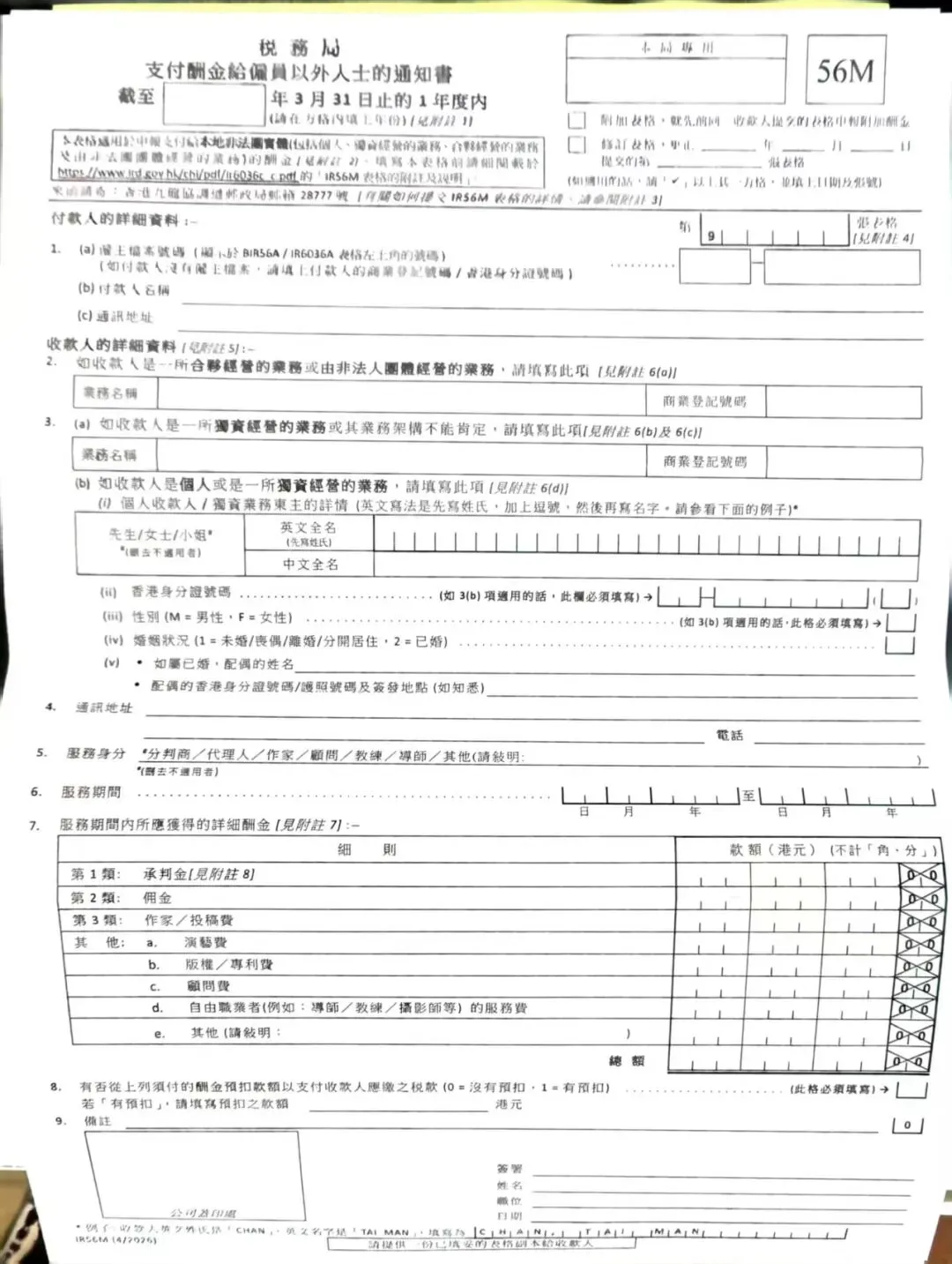 香港税局支付薪酬给雇员意外人士通知书,作为公司成本。