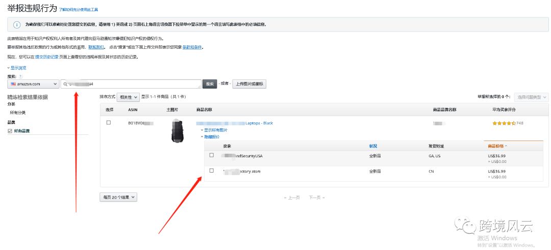 然后我们输入要投诉的asin号,勾选要投诉的跟卖