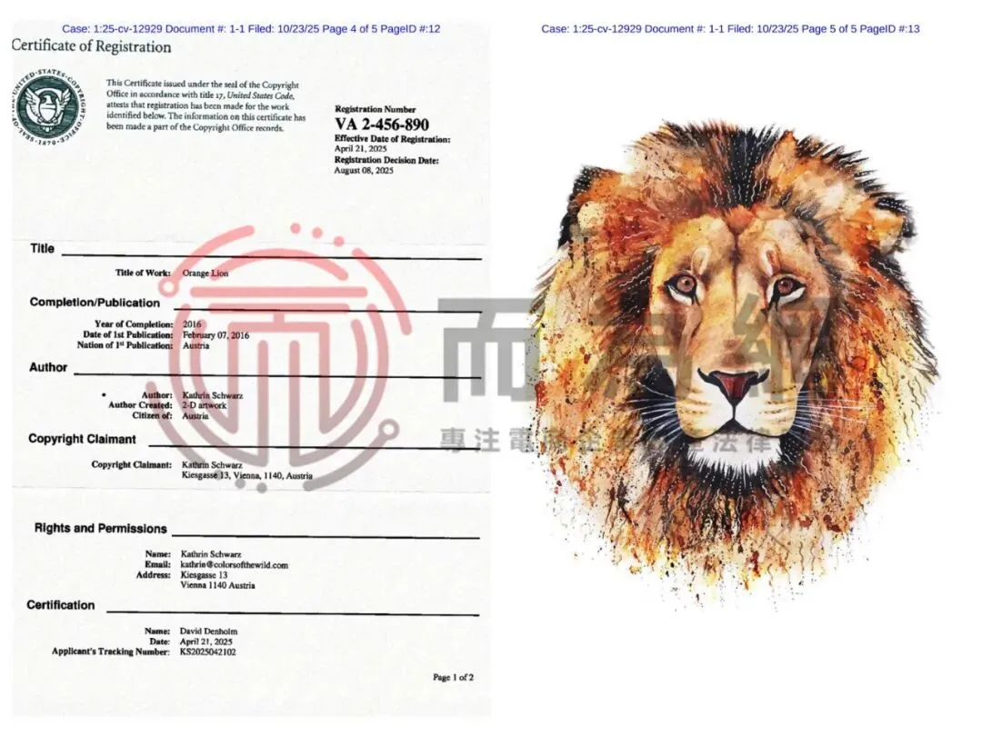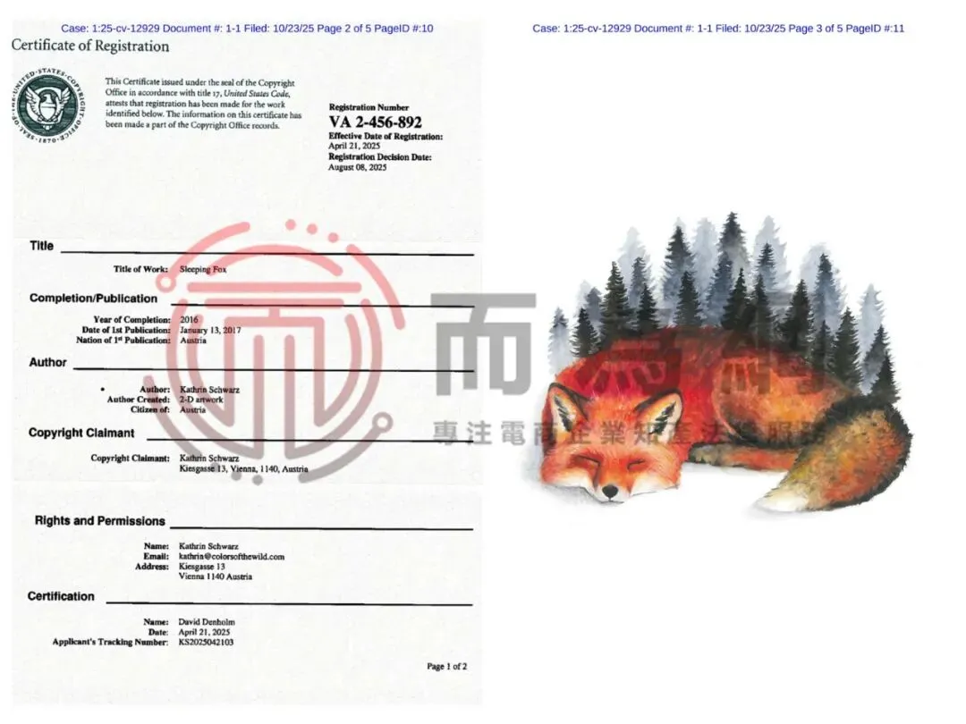 【侵权快讯】25-cv-12929 涉案店铺46家!这两张狐狸、狮子动物插画速排查下架!