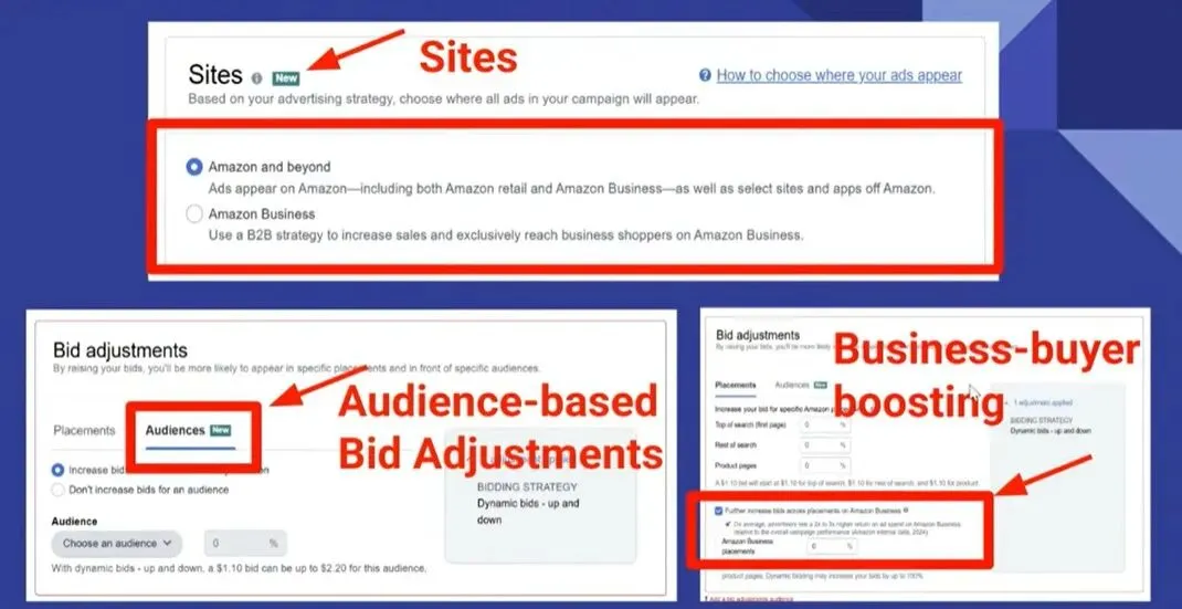 这是针对B2B卖家的新功能,通过出价调整可以精准定向企业买家。对于做办公耗材、商业设备等品类的卖家来说,这个功能能帮你精准捕捉高价值B端流量,提升转化质量。