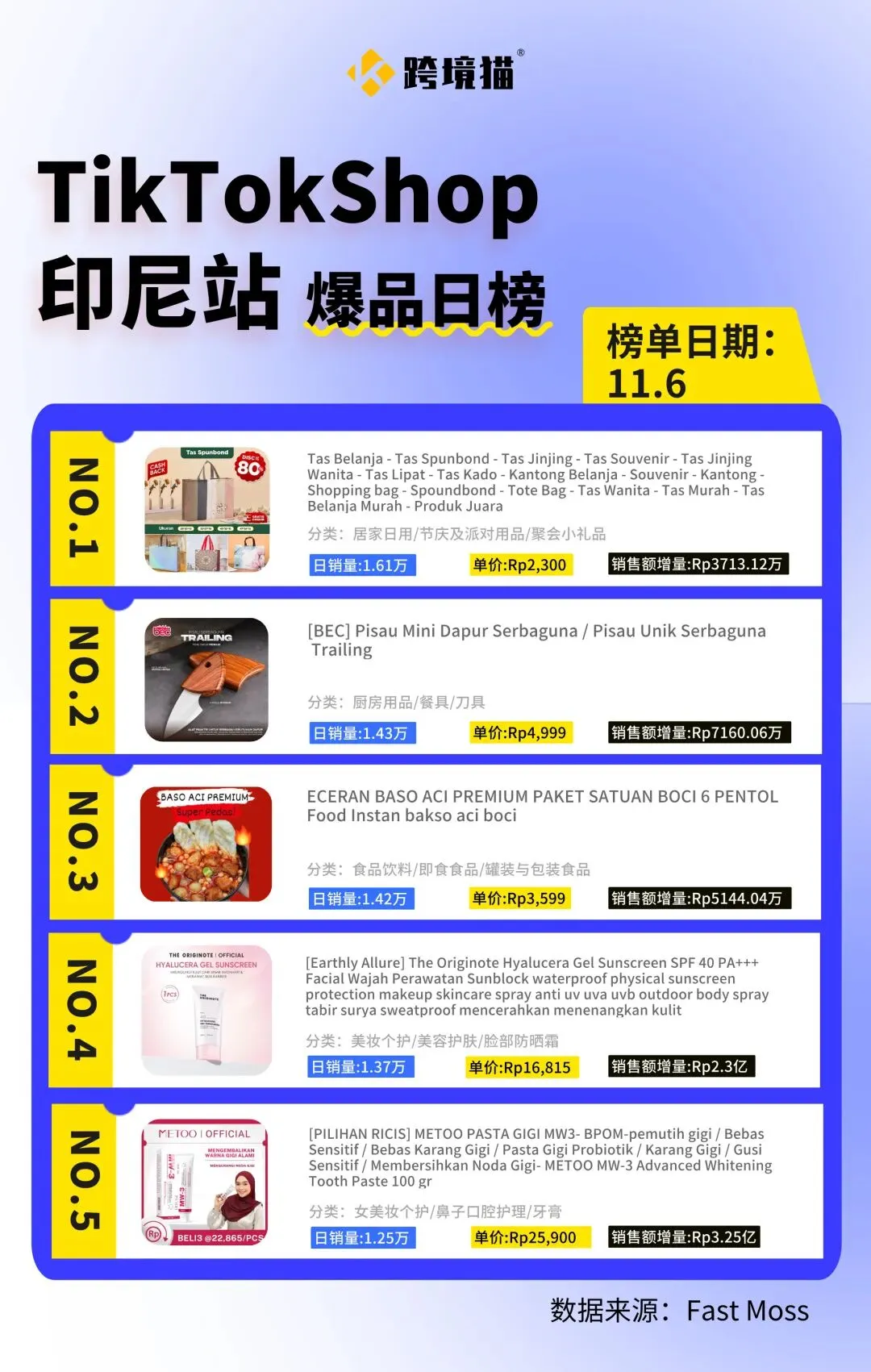 印尼站11月6日爆品榜单