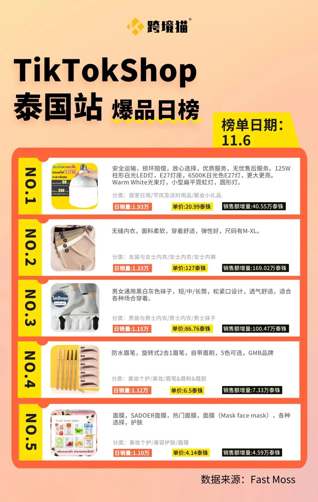 泰国站11月6日爆品榜单
