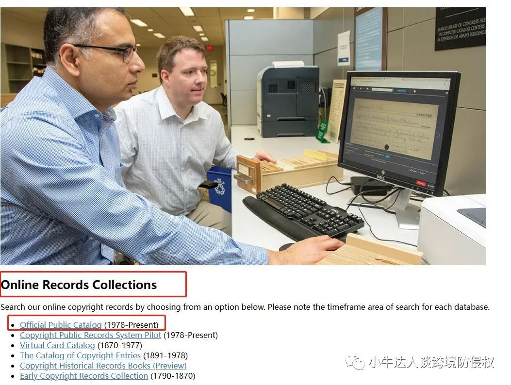 下滑找到“Online Records Collections”板块,点击“Official Public Catalog (1978-Present)”