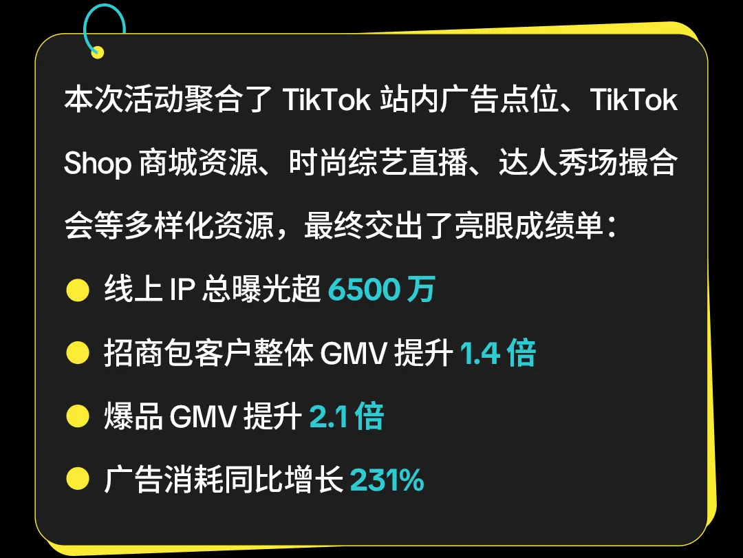 带动海量用户参与共创:活动成功吸引了许多 TikTok 用户的关注,撬动 3 万+ 春日新品 SEO,累计产生 3.5 万条新增用户内容,带动达人新增发文,GMV 环比增长 23%,总 GMV 达 5900 万美元。