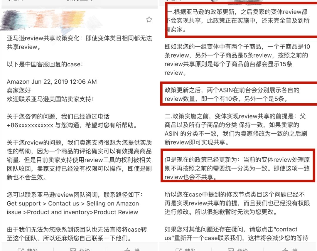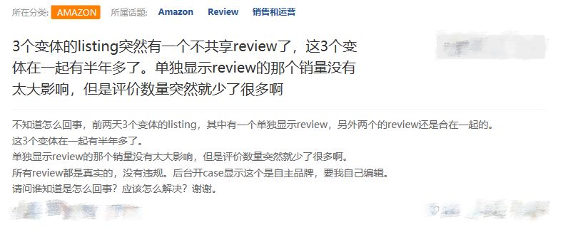 据了解,在不确定“亚马逊变体review政策又变”这个事情是不是真的之前,已经有很多卖家遇到变体的listing突然不不共享review的问题了,某个人就这个问题开case询问后,了解到的情况是之后卖家的变体review都不会实现共享,此政策正在实施中,还未完全普及到所有卖家。