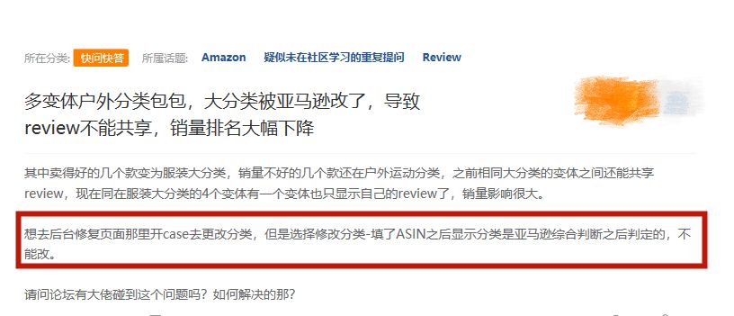 想去后台修复页面那里开case去更改分类,但是选择修改分类-填了ASIN之后显示分类是亚马逊综合判断之后判定的,不能改。