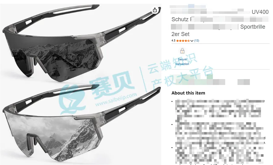 Shuangxi Zhang 是一名中国卖家,别看是本土卖家,在眼镜类产品的设计和知识产权布局上相当专业。旗下申请专利的这款偏光太阳镜,专门针对户外运动爱好者设计,主打的就是轻盈舒适,哪怕长时间佩戴也不会有不适感,而且能应对各种天气状况,不管是骑行、登山还是其他户外场景,都能有效保护眼睛、提升户外体验,在市场上很受青睐。