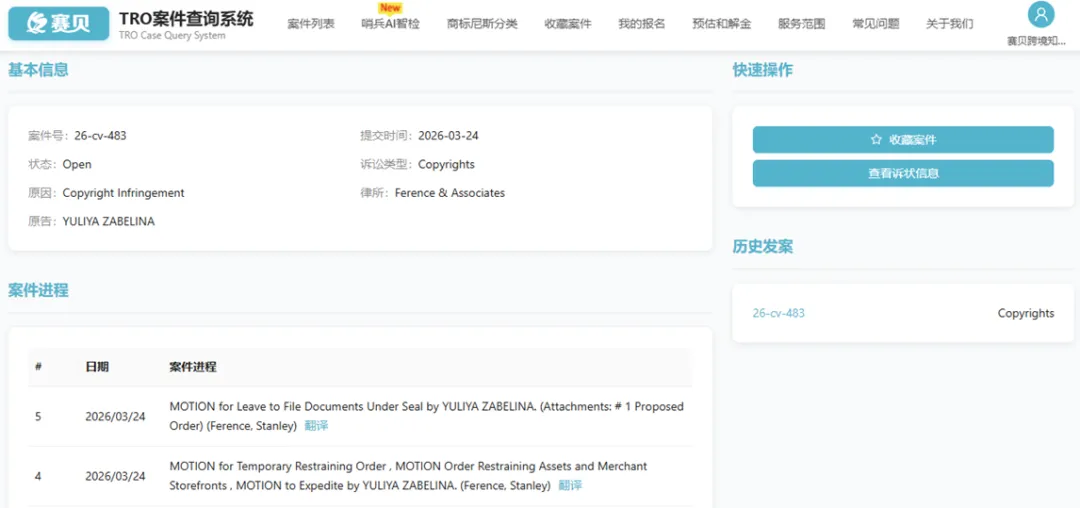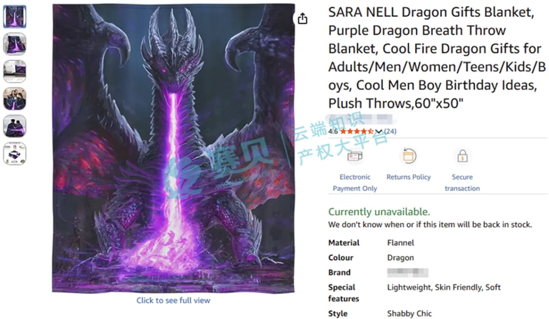 美国宾夕法尼亚州西区联邦地区法院于2026年3月24日受理一起版权侵权TRO案件,原告YULIYA ZABELINA(俄罗斯专业艺术家)委托Ference & Associates律所发起诉讼,指控多名匿名被告在亚马逊、沃尔玛、Temu等平台擅自销售侵权产品。本案核心涉案标的为原告享有美国版权的暗黑奇幻风2D龙类艺术作品《Black Dragon Breath》(黑龙之息)