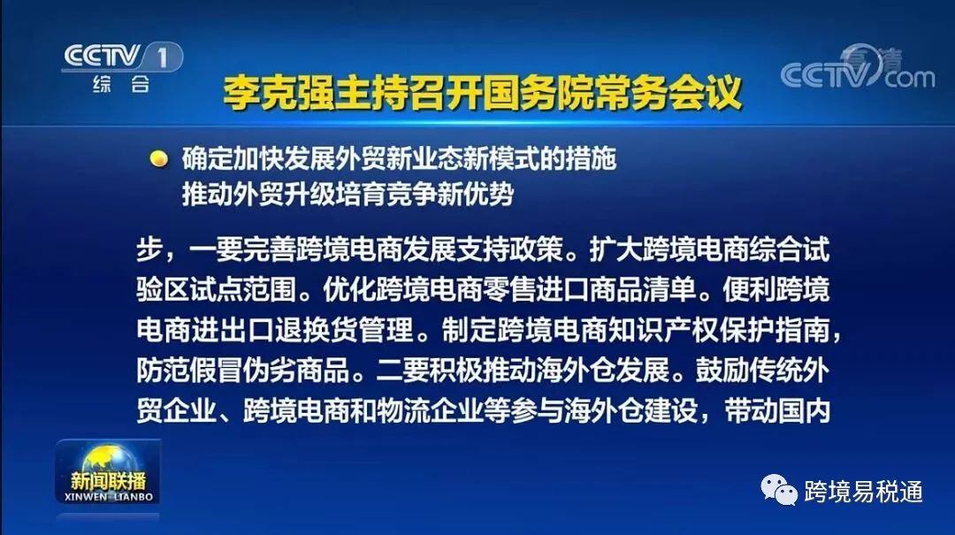 国务院常务会议:扩大跨境电商综试区试点范围、优化正面清单、推动海外仓发展