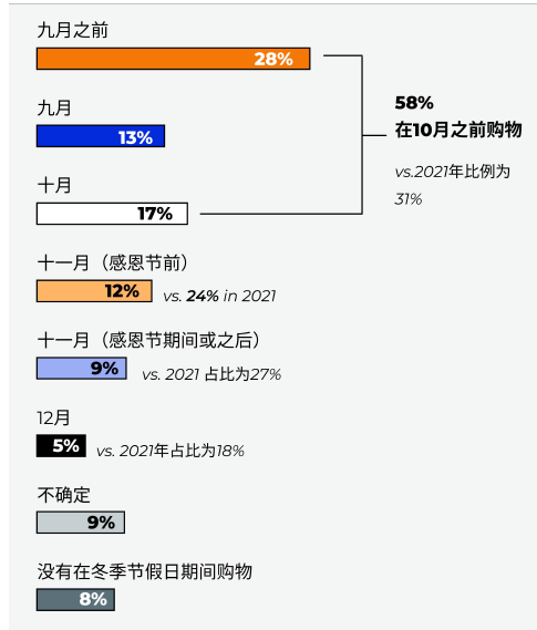 由于担心通货膨胀率进一步提升,大批消费者选择提前购物,有58%的消费者表示,会在10月前购物,此比例在去年仅为31%。