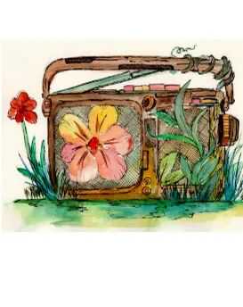 VA2-414-556:《数码莲花》——传统莲花造型与像素化处理结合,水墨底色叠加淡青色水彩晕染。