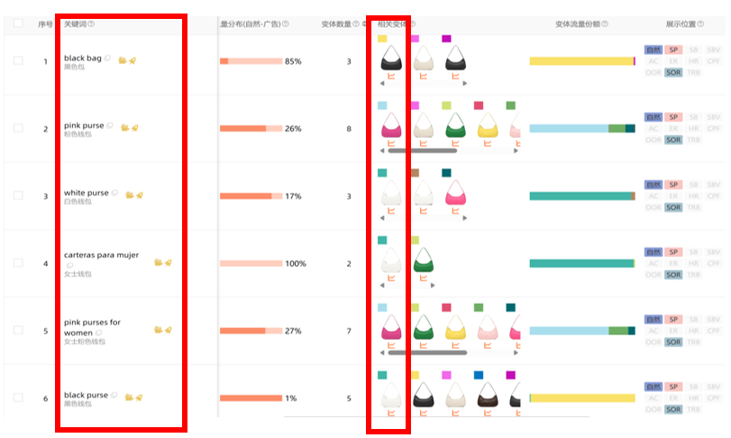 特点:不同子体负责不同的流量入口(比如黑包专门吃“black bag”的流量,粉包专门吃“pink purse”的流量)。