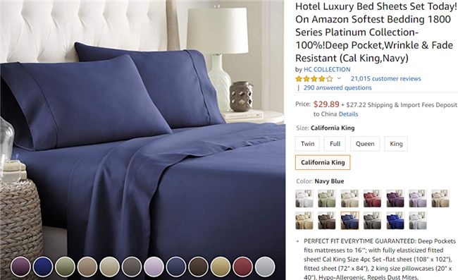 该产品由超细纤维面料制成,比埃及棉更加柔软透气。这种织物的优势在于具有抗皱和抗褪色作用、低过敏性、环保甚至还能防止螨虫。它的护理方式也很简单,简单机洗并烘干即可。此外,它还有17种颜色可供选择。