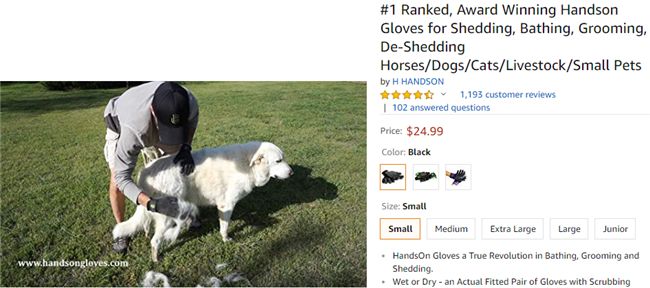 该产品的特点是其手指和手掌处的弹性橡胶凸起,它可以方便使用者为宠物梳理毛发、提供促进血液循环的按摩并有效保护宠物身上的天然油脂。