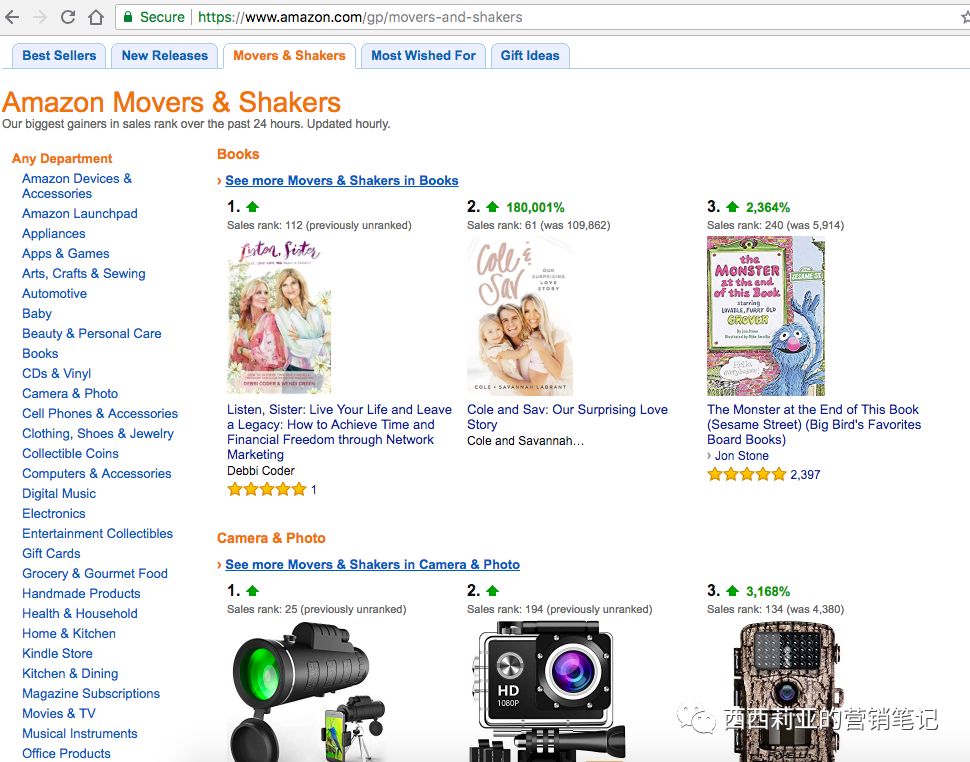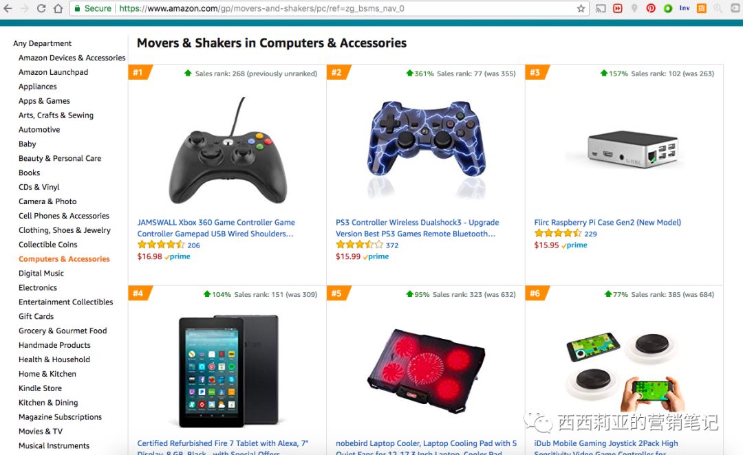 很多教程都有教过用Amazon的best seller来选品,很少有人提到shakers & movers。