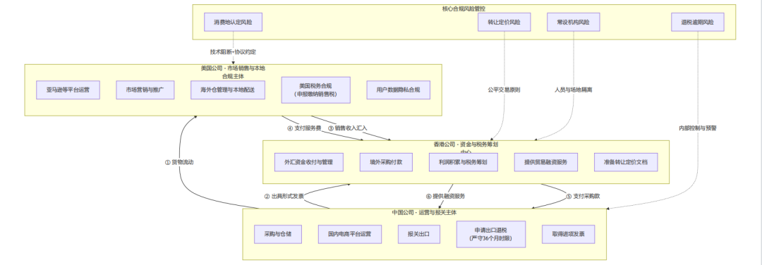 美国公司收取销售收入→香港公司统一管理资金→支付国内公司采购款