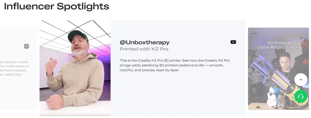 用户会默认「这个KOL和我一样是3D打印爱好者,他用着好,那产品肯定靠谱」,大幅降低了海外用户对中国品牌的信任门槛,提升独立站的转化率。