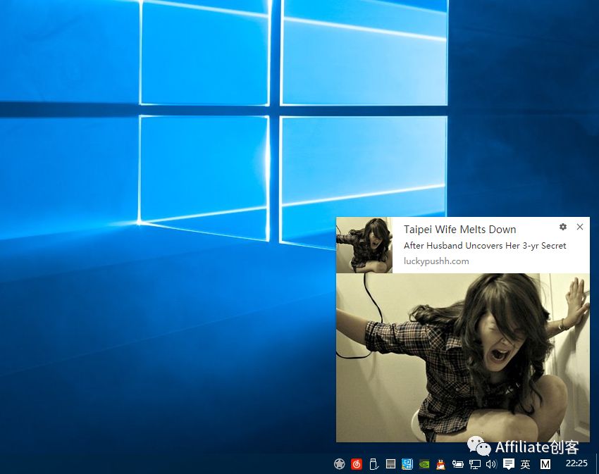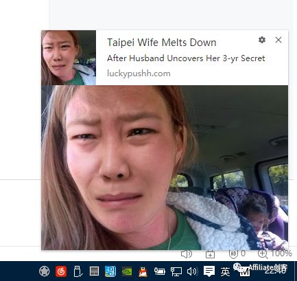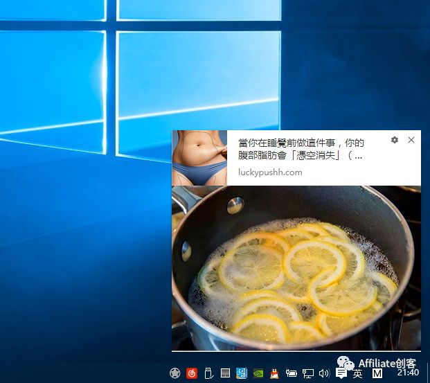 在我订阅了网站推送信息和分配Zoneid后就收到广告。这时候我没有打开谷歌浏览器,广告直接呈现在我的电脑桌面右下角。