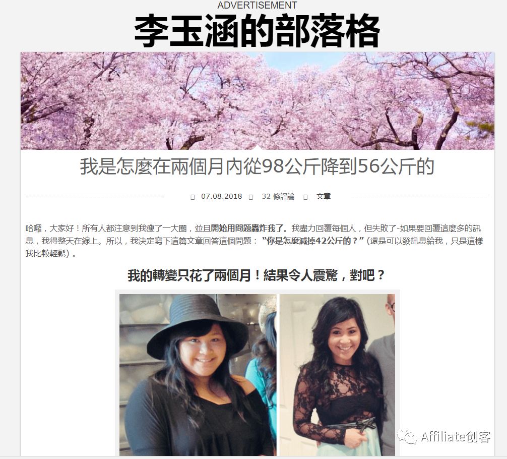 被重定向到引导页,这个页面是不是很熟悉?相信跑过Adcombo的朋友应该看出来了,跳到一个减肥博客LP,LP下还有相应产品图片引导和一些折扣按钮。