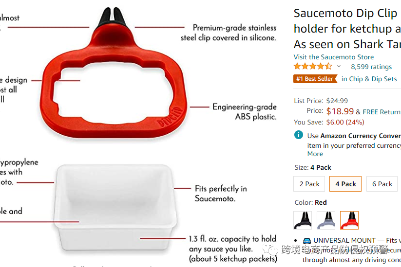 这款车载食品支架,在亚马逊美国站,它带有#1 Best Seller标志,现有留评数8599: