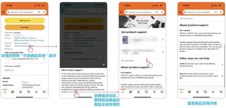 对此,亚马逊推出”商品支持”功能!现在全面接入Rufus,能提供高效的售后沟通,大大减少退货。