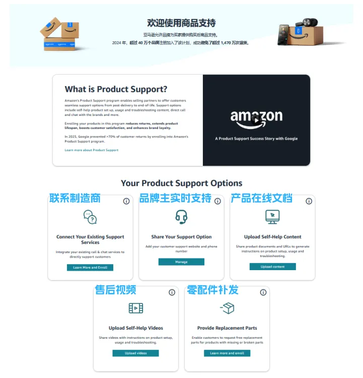 “亚马逊商品支持”能从源头减少退货风险,且新老卖家均可适用。