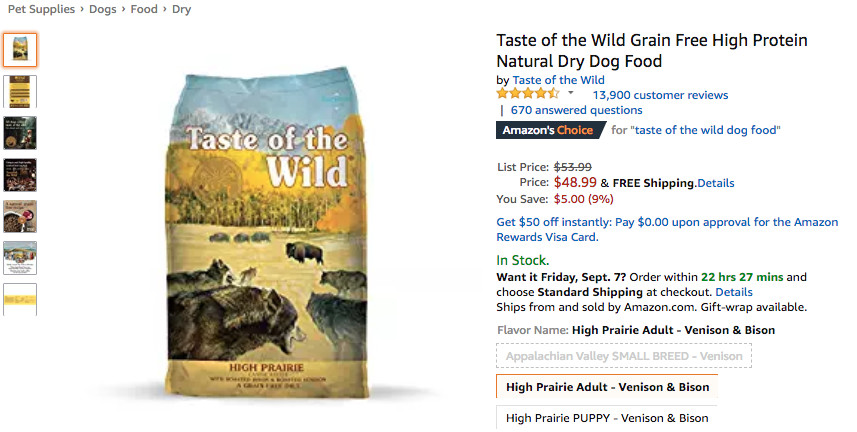 品牌Taste of the Wild的干狗粮连续五度占据榜单第二,以平均排名3.29位列综合排名第三位;