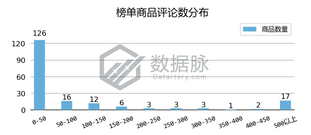 在上周登榜 Pet Supplies 品类 Hot New Releases 榜单的商品中, 单个商品拥有的最大评论数为8841.00条,最小评论数为0.00条,平均评论数216.16条,评论平均星级4.51星。 其中,66.67%的上榜商品评论数不超过50条,此外有20款上榜商品的评论数超过了500条,占上榜商品总数的8.99%。同时,骆探长(shujumai.com)发现,与前几期分析相比,该周进入Hot New Releases榜单的商品整体平均评论数大幅度减少,平均星级增加0.03星,换季新品上榜空间进一步增大。