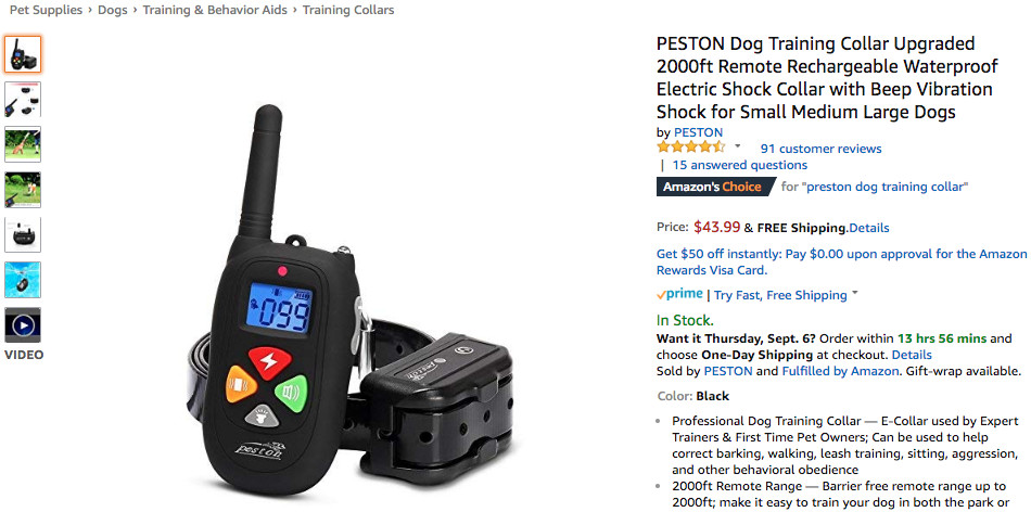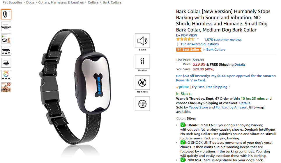 可以看到,在上周Pet Supplies品类的Hot New Releases榜单中, 品牌PESTON推出的一款宠物狗防吠项圈在上周3次占据榜单第三,以4.29的平均排名和4.6的高分口碑评价,成功夺得商品综合排名第一,骆探长(shujumai.com)发现,该商品目前只有86条评论,该商品的后续市场表现值得期待;