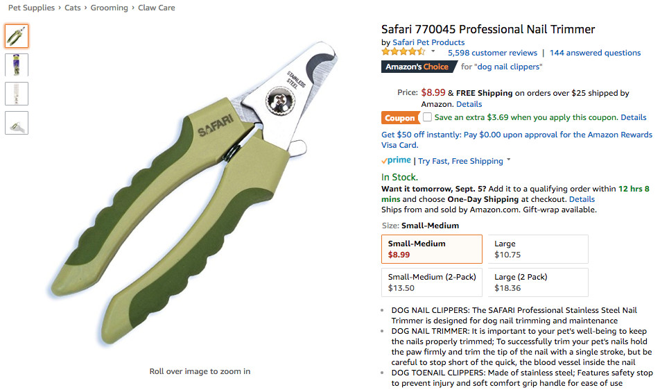 品牌Safari Pet Products的宠物指甲剪以平均排名51.75位列商品综合排名第二位,其单日最大涨幅位91.0%;