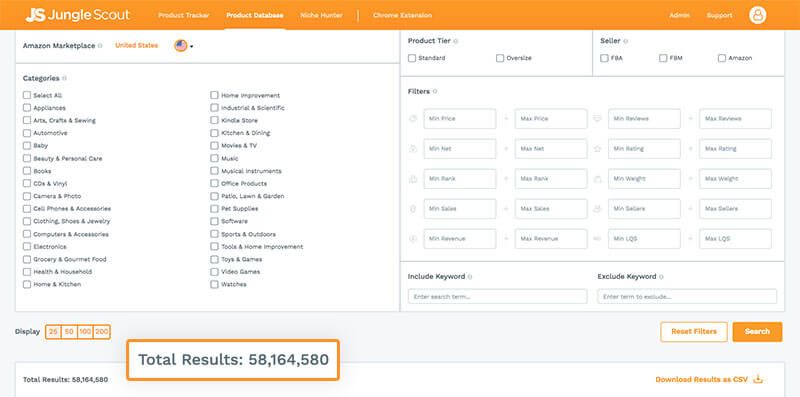 Jungle Scout产品数据库(Product Database)的工作原理与此大致相同。
