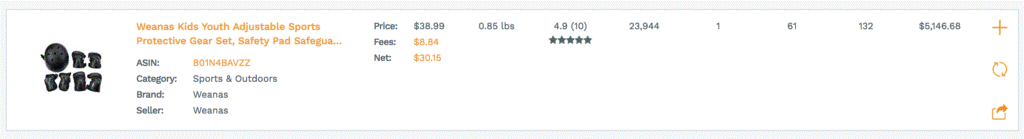 举个栗子,我们发现了儿童保护运动装备(Kids Protective Sports Gear Kit),它的机会分值(Opportunity Score)为6分,有月赚5,000美元以上的潜力哦!