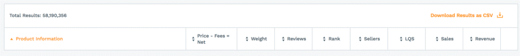 产品数据库的设计逻辑是,一旦进行了筛选,就可以根据你最关心的条件对产品进行排序,从而自动对结果进行二次筛选。比如你正在寻找一个竞争小的产品,同时可能意味着该产品评论也少。