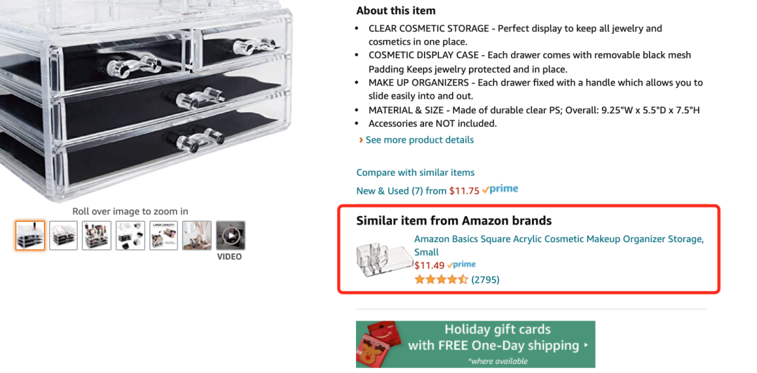 接下来,我们在此关键词下看一看自然流量下的产品。拥有Amazon Choice的第一款产品的销量远远落后于第三款和第四款,但是它的自然位却高于销量比它高出10倍甚至12倍的同款产品。