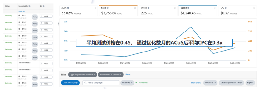 当产品高客单价,ACOS偏低, 转化率低时,我们要采用激进的引流策略,前期要非常关注产品得到的点击。