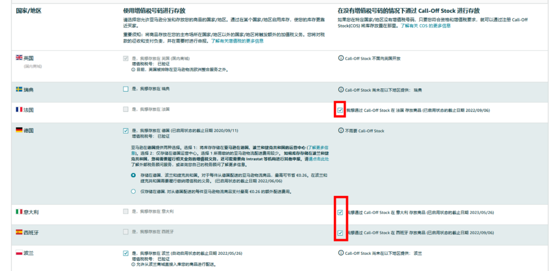 2⃣️ 如果您有法国、意大利和西班牙中任意一国VAT号,则您可以通过泛欧库存加速器(COS)开启Pan-EU,由亚马逊将库存存放在法国、意大利和西班牙,但是暂时无法存放在德国**。