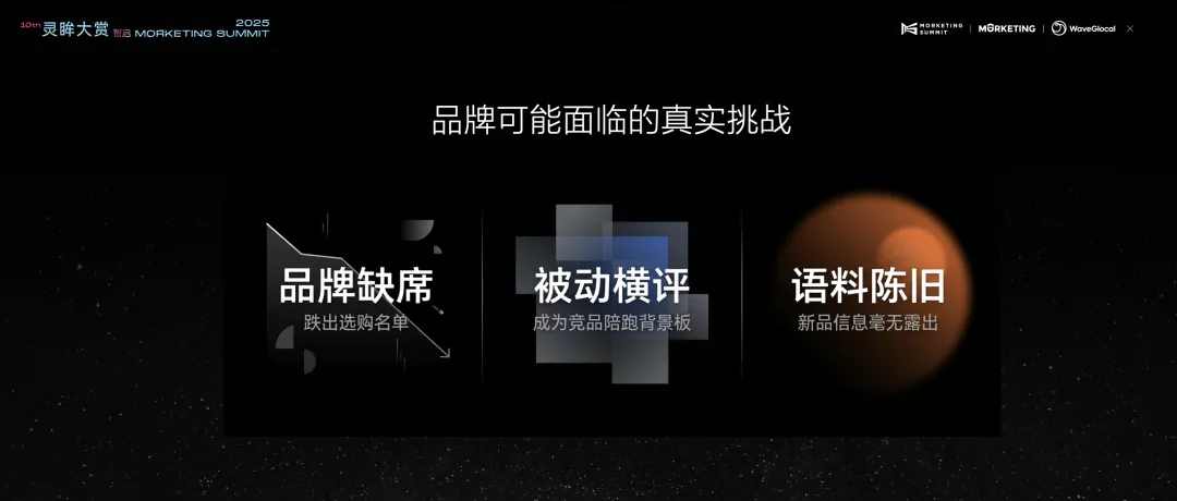 还有一些潜在挑战:比如“品牌缺席”,AI给出的推荐列表里没有自己的品牌该怎么办?即便出现了,但排在最后一名又该如何?再比如“语料陈旧”,如果品牌已经升级到了iPhone 17,AI却还在推荐iPhone 12,这类问题都会影响品牌营销效果。