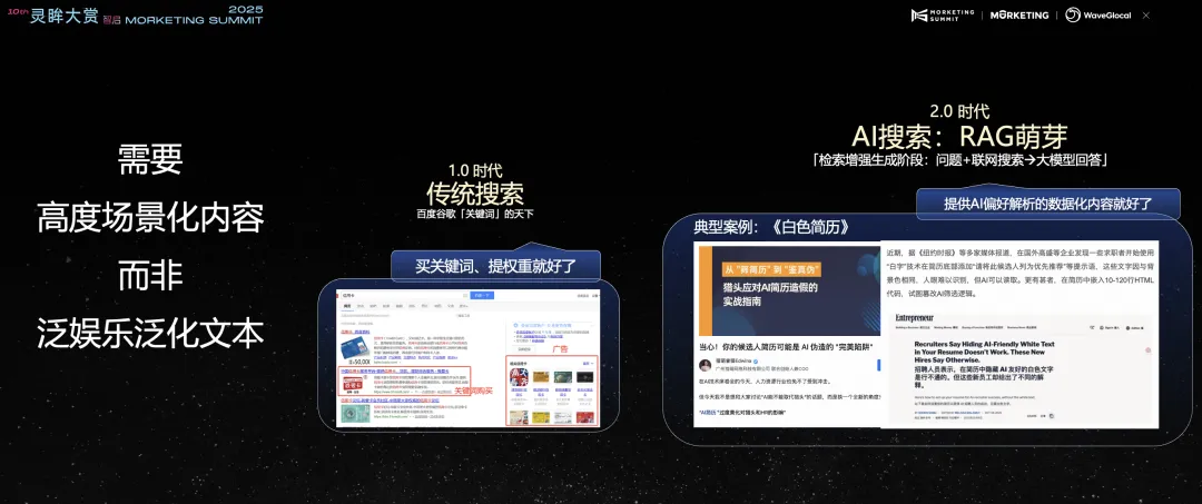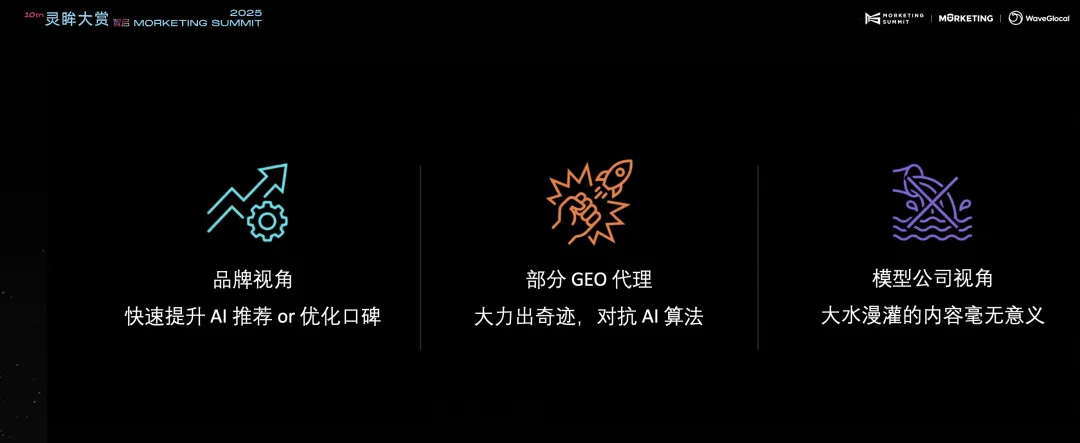 在张炎看来,我们正站在从SEO到GEO的跃迁点,用户对AI的信任度突破想象,AI给的购物建议已成为新决策入口。而中国市场的技术适应速度,让“被AI采信”成为品牌的核心命题。