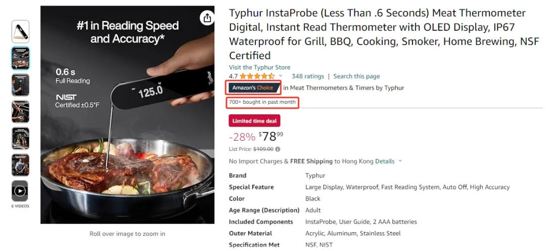 一款99美金的智能温度计也入选Amazon's Choice,月销超1000单。