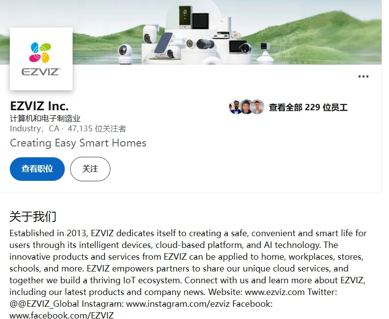 EZVIZ 的社媒运营,从一开始就没有把 “单平台粉丝量” 作为核心 KPI。它构建的是一套 “品牌展示 + 区域招商 + 零售导流 + B2B 背书”的全域矩阵,彻底抛弃了 “一个全球号通吃” 的粗放模式。