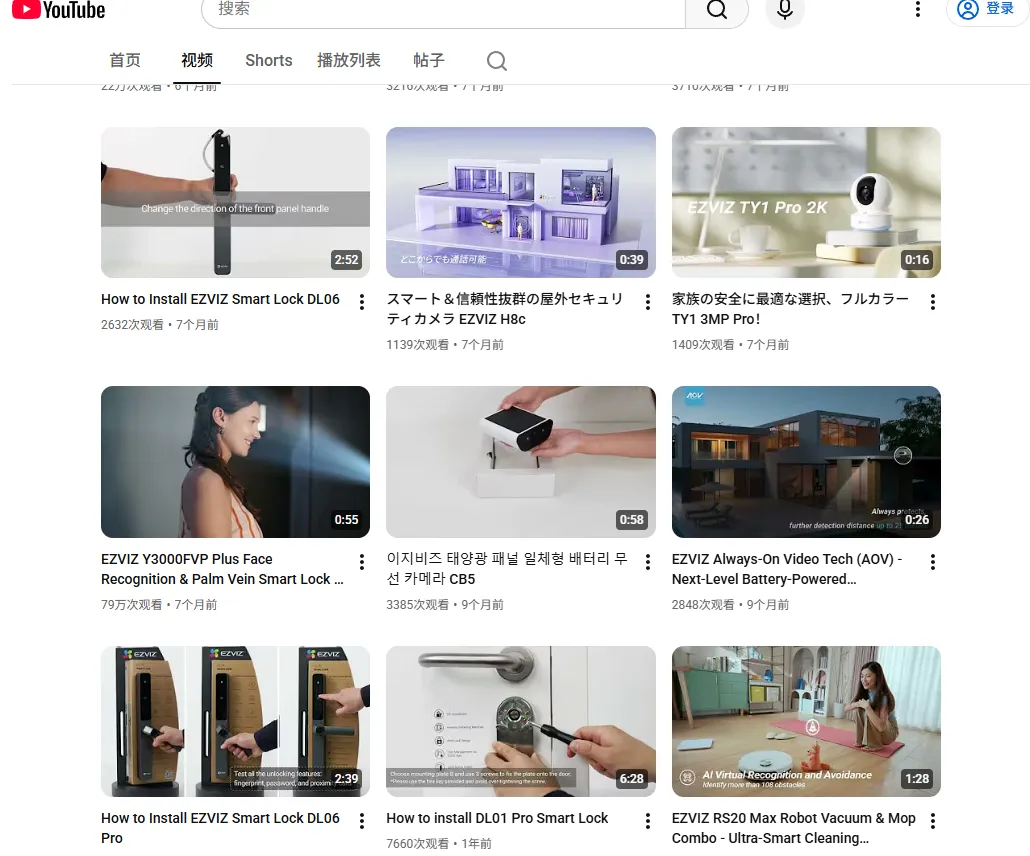 • YouTube:深度教育阵地,有大量的安装教程、故障排查、功能演示视频,相当于把售后服务前置化、内容化。对于安防类 IoT 产品,这能显著降低用户的使用门槛和退货率。