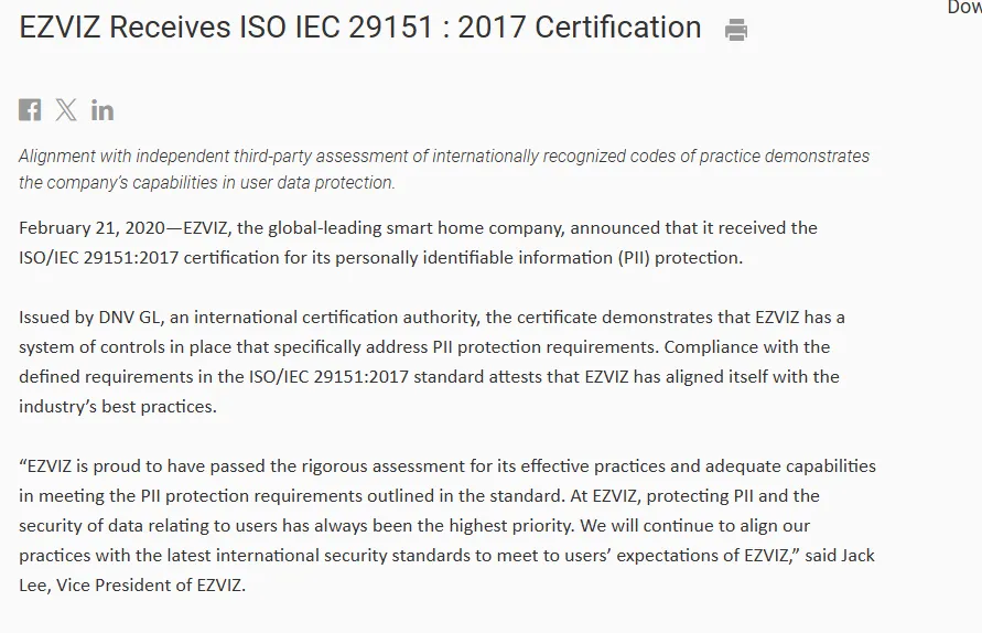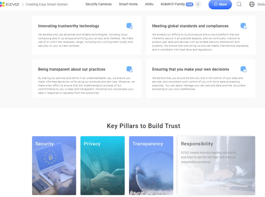 安防品类的核心是数据安全与隐私信任,EZVIZ 针对欧美市场的高敏感度,搭建了主动合规、透明公开的信任体系,破解中国品牌出海的最大壁垒。