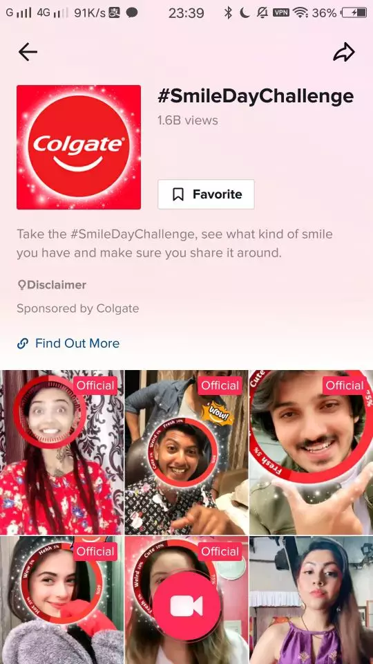 强势布阵东南亚和中国台湾 印度,泰国,马来西亚,菲律宾,中国台湾 Tiktok受欢迎程度高,受众基数大——截止至2018年底,东南亚的总安装量高达到1.9亿,在东南亚大多数国家都持续占据视频播放APP分组的下载量榜单TOP1的席位(数据来自:移动应用数据分析公司Sensor Tower)。而在台湾地区的Tiktok用户量也高达百万,占总人口近30%! Tiktok年轻的用户群和高露洁目标人群高度吻合—— 在东南亚和台湾地区的Tiktok用户群以18-24,爱生活/爱自我表现/更乐于传播的年轻人为主,而高露洁此次进军5地就是想走年轻化路线,吸引更多年轻受众~ 在这两个前提下,我们的5地布阵收获颇丰~ 2 玩转人气KOL矩阵 各国各地区都有自己代表KOL~ 所以我们就在这5个地区,牵线了上百位在当地的Tiktok高人气KOL,布下KOL矩阵。 这些Tiktok上的KOL一直都是Tiktok流量池的宠儿——只要平时发布的视频获得高赞高互动,新发布视频就能很快放在能获得最大曝光的大流量池。 所以除了每位KOL本身十万百万的粉丝外,还会有更多受众可以看到高露洁微笑挑战赛相关短视频~ 3 别具匠心“笑容指数”动态AR贴纸 这场挑战赛主要围绕一个以高露洁为主题的动态AR贴纸展开~ 贴纸加入了简单有趣的互动元素,受众参与门槛也很低——笑就行了~高露洁动态贴纸会告诉你,你的笑容有多美——笑容指数都要爆表了! 高露洁贴纸除了设置“笑容指数测试”外,匹配的原创音乐也给整个挑战赛注入了更多活力。在高露洁主题框里,搭配音乐随意发挥你的创意——情景喜剧,恶搞舞蹈,清新跳跃,踩点定点……最后只要展露出你灿烂的笑容,就挑战完成啦! 在成功和受众互动的同时,又可以突出高露洁对牙齿健康美丽的品牌贡献~ 还有比这更讨喜的品牌互动吗! 4 全方位一条龙广告位投放 小帆团队作为Tiktok官方代理,自然能最高效地用最优惠价为客户拿下了最合适的广告位~ 这次高露洁全方位投放了开屏广告,信息流广告,打造挑战赛活动主页,还上传了团队制作的品牌专属原创音乐,为这次挑战赛全面造势! 5 世界微笑日借势营销 每年10月的第一个星期五就是世界微笑日,不少品牌都不会放过这次营销的机会。 不论海内外,网络都常常流行一些关于“生活不易”的情感抒发,人们或自称社畜,或在社交媒体上发一些带点灰暗又带点励志的风景+slogan图~ 可见现代人的生活精神压力非常需要放松,需要正能量输入。 而借势跟高露洁品牌匹配度超高的世界微笑节来营销,不仅在高压快节奏的现代社会给人一种清新放松的活动体验,更可以传递品牌积极向上,阳光乐观的理念和形象! 6 活动最终超惊喜成果 开屏广告▼ 1953万+曝光 231万+ 点击 信息流广告▼ 13.4亿+曝光量 27万+点击 挑战赛主页视频▼ 25亿+播放 24.7亿+互动(点赞、评论、分享) 52万+视频创作参与量 163万+视频发布总数