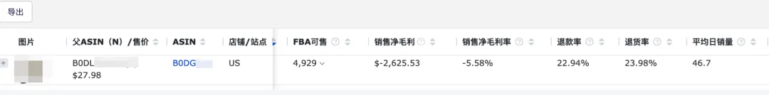仔细查看影响利润率的各个构成发现,退货率竟然有23.98% 。