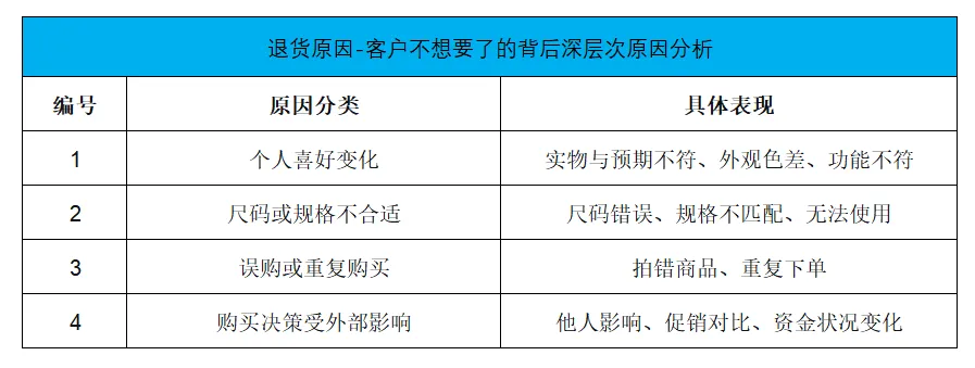 结合评论与行业常见情况,卖家不想要了的深层退货原因可分为四类: