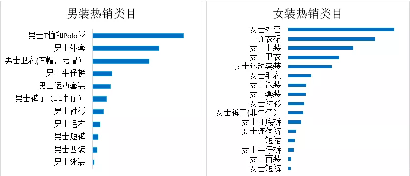 女装热销:外套、连衣裙、卫衣、运动套装、泳装等类目。