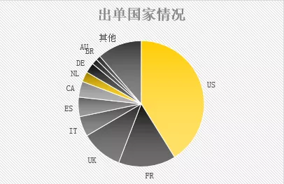 服装行业出单top国家:美国、法国、英国、意大利、西班牙、加拿大、荷兰、德国、巴西、澳大利亚等。