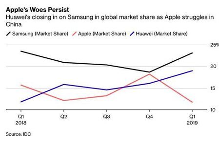 我们从 IDC 提供的数据可以看到,一季度 iPhoone 销量被华为挤到第三名,甚至有人预测 2020 年华为会从三星夺取全球市场份额第一位。目前华为在全球的市场主要以欧洲 25%、亚洲 17%、拉丁美洲 14%、中东 11%、北美几乎没有。(详情参考白鲸出海《2018 四季度全球手机市场报告:三星苹果华为份额紧咬》(微信公众号回复21718阅读文章))
