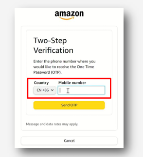 4)如果 24 小时候后仍然无法获取验证码请联系您的运营商,询问是否阻挡了来自亚马逊的短信;