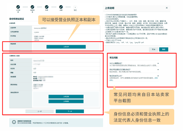 4)确保卖家平台填写和提交的资料必须真实有效,而且与提交的文件中的信息相符。